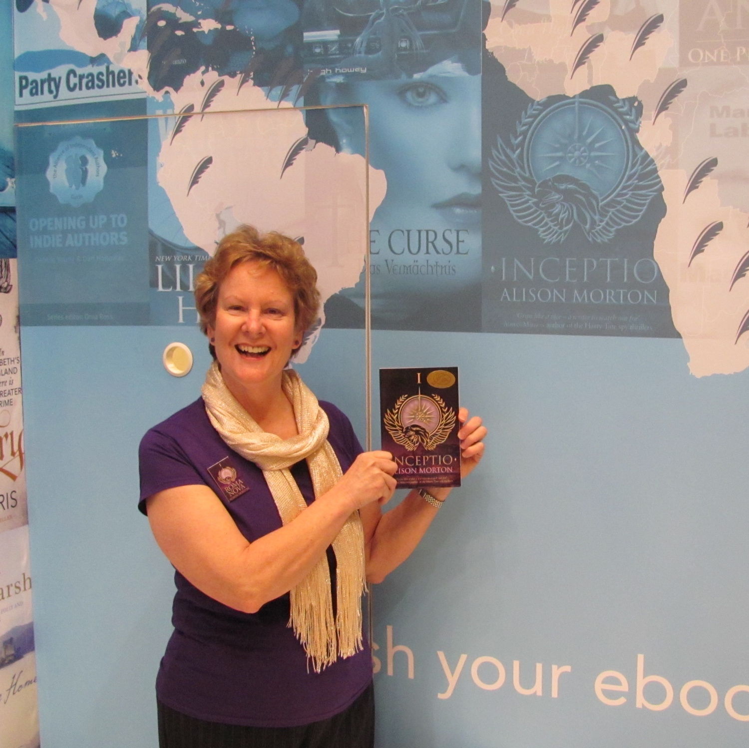 Here I am at the Kobo stand. Thrilled to see INCEPTIO was included in the graphic on the side wall. Of course, I had a copy of the paperback with me so, of course, a photo was mandatory. Next, Kobo invited me to have a professional photo taken by Rebecca Millar, with their compliments.