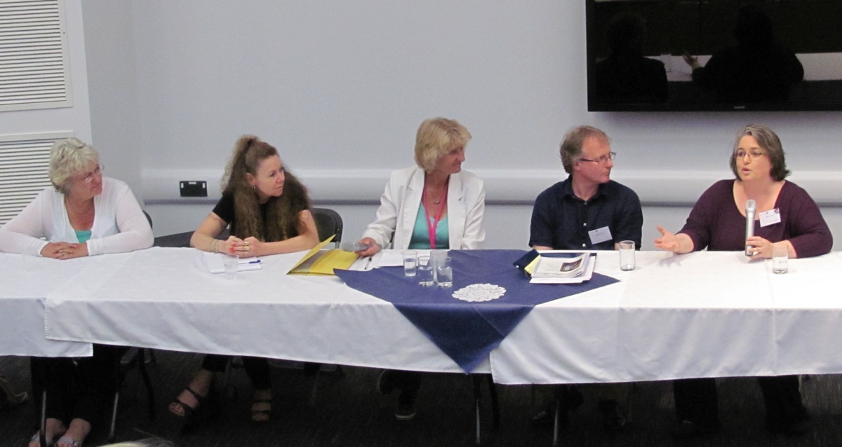 Katie Fforde (RNA president), Pia Fenton (RNA chair), Jenny Barden, Richard Lee (Historical Novel Society), Nikki Logan (Romance Writers of Australia)