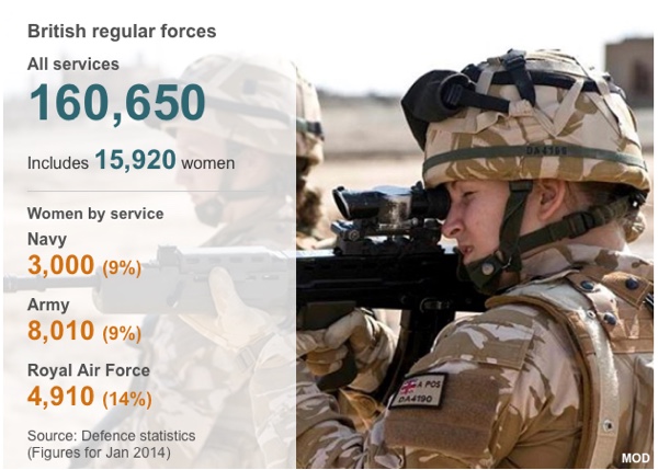 UK defence secretary, Michael Fallon, announced on 19 December that he wanted to end the army’s ban on women serving in frontline infantry roles in the British Army by 2016. He pointed out that women were already deployed on the frontline of the air force and police. “There are women flying fighter bombers at the moment over Iraq and I don’t think it is right now to exclude women from considering any role that they want to apply for.”