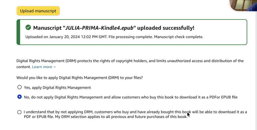 How a book appeared originally in my KDP account – Without DRM